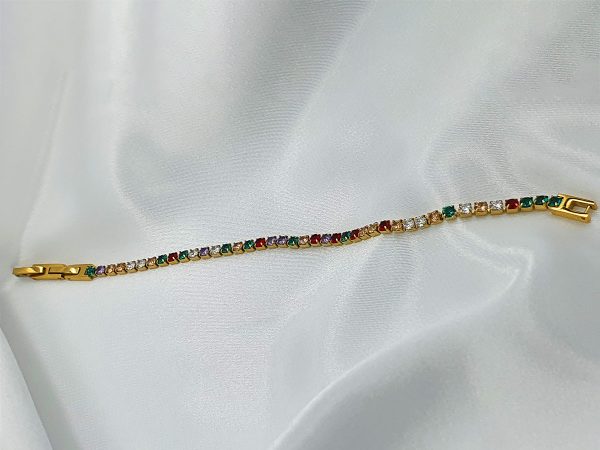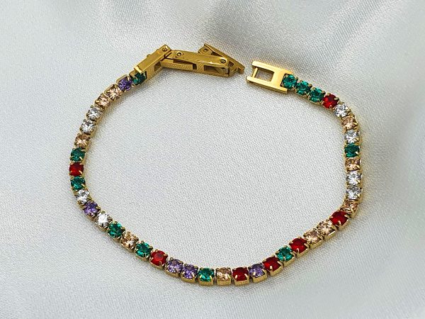ΒΡΑΧΙΟΛΙ ΧΡΥΣΟ ΑΛΥΣΙΔΑ ΑΠΟ ΑΤΣΑΛΙ ΜΕ ΧΡΩΜΑΤΙΣΤΕΣ ΠΕΤΡΕΣ ΚΑΙ ΚΟΥΜΠΩΜΑ ΑΣΦΑΛΕΙΑΣ