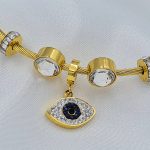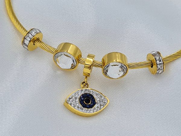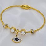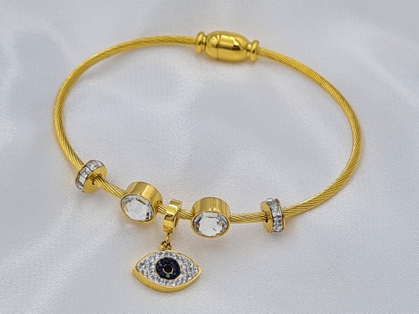 ΒΡΑΧΙΟΛΙ ΧΡΥΣΟ ΑΠΟ ΑΤΣΑΛΙ ΜΕ ΣΥΜΒΟΛΟ ΜΑΤΙ ΚΑΙ ΑΠΡΟΜΑΥΡΑ ΖΙΡΓΚΟΝ. ΚΟΥΜΠΩΜΑ ΜΑΓΝΗΤΗ