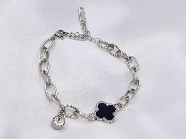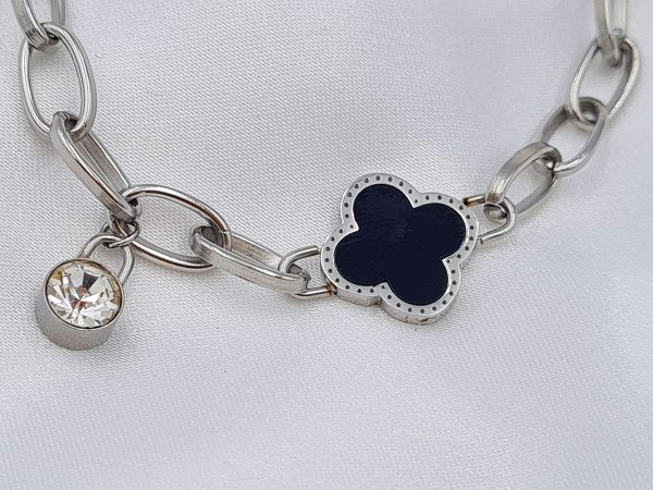 ΒΡΑΧΙΟΛΙ ΑΣΗΜΙ ΣΕ ΑΛΥΣΙΔΑ ΜΕ ΜΑΥΡΟ ΣΤΑΥΡΟ ΚΑΙ ΑΣΠΡΗ ΠΕΤΡΑ