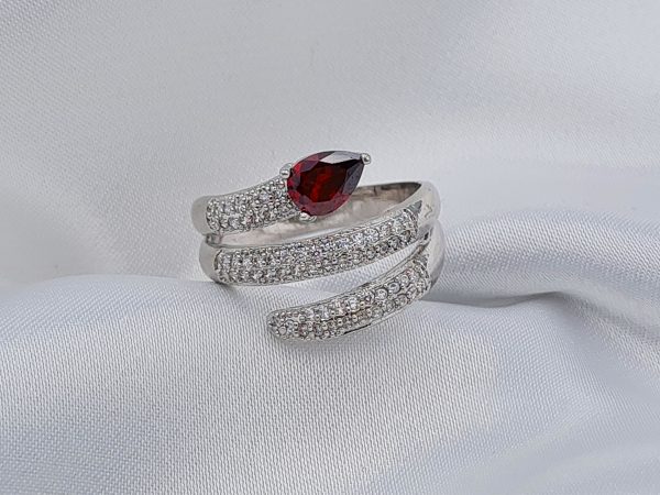 ΔΑΧΤΥΛΙΔΙ ΑΣΗΜΕΝΙΟ ΑΠΟ ΑΤΣΑΛΙ ΣΕ ΣΧΗΜΑ ΦΙΔΙΟΥ ΜΕ ΠΕΤΡΑ ΚΟΚΚΙΝΗ ΚΑΙ ΛΕΥΚΑ ΖΙΡΓΚΟΝ, ΡΥΘΜΙΖΟΜΕΝΟΥ ΜΕΓΕΘΟΥΣ