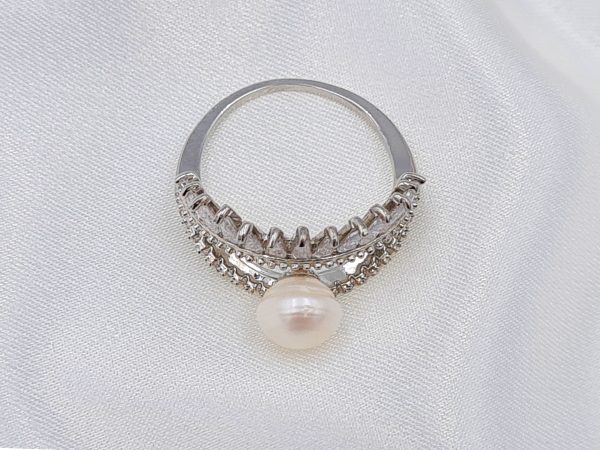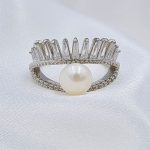D0064 ΔΑΧΤΥΛΙΔΙ ΑΣΗΜΕΝΙΟ ΣΧΕΔΙΟ ΜΑΤΙ ΜΕ ΛΕΥΚΟ ΜΑΡΓΑΡΙΤΑΡΙ ΚΑΙ SWAROVSKI