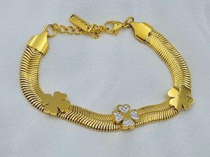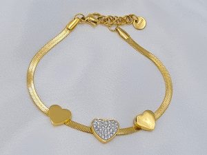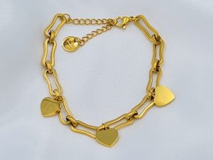 B0038 ΒΡΑΧΙΟΛΙ ΧΡΥΣΟ ΑΛΥΣΙΔΑ ΜΕ ΚΑΡΔΟΥΛΕΣ ΚΑΙ ΠΕΤΡΕΣ